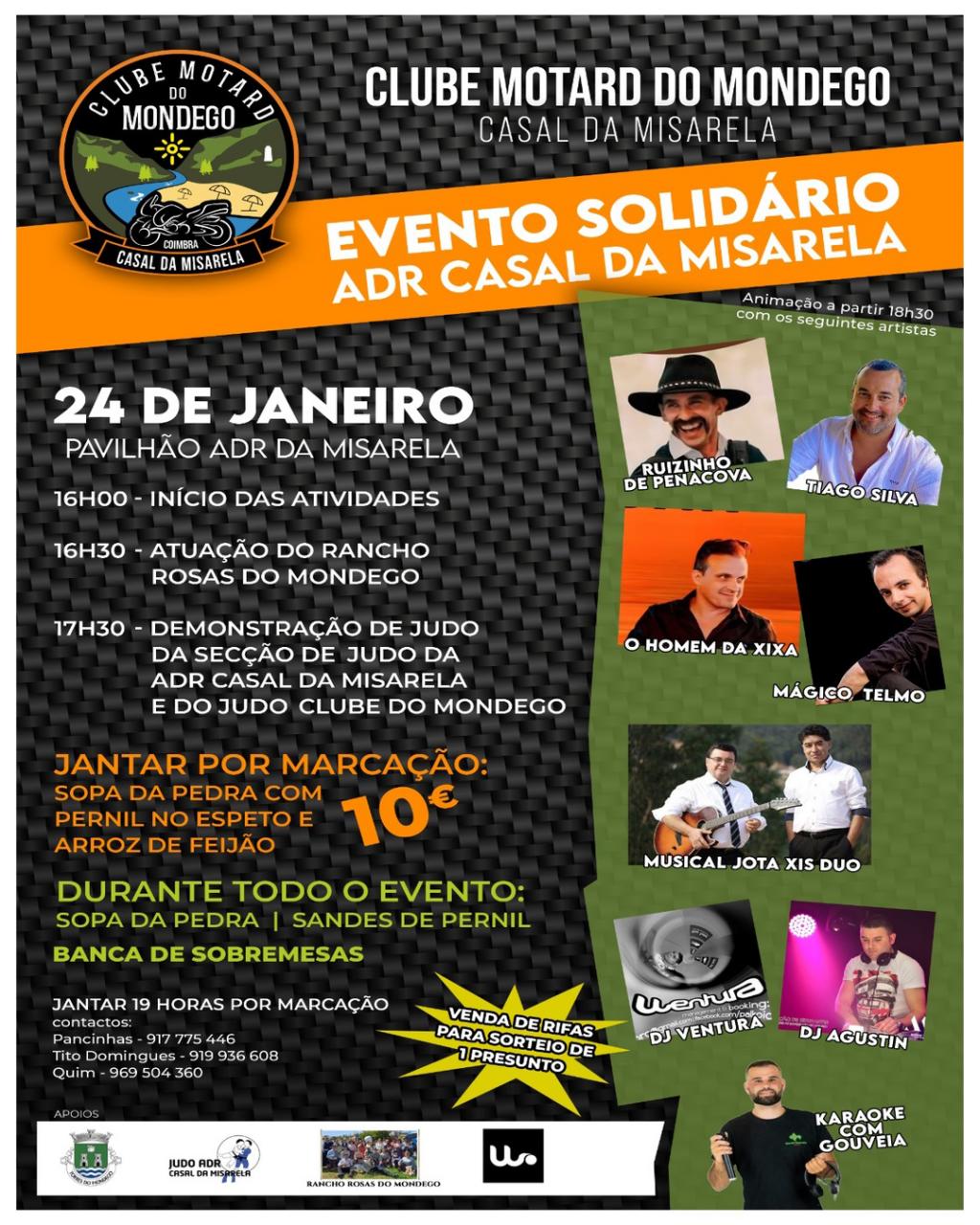 Informamos toda a população que no próximo dia 24 de janeiro, o @clubemotarddomondego o irá promover uma ação de solidariedade a favor da ADR Casal da Misarela.